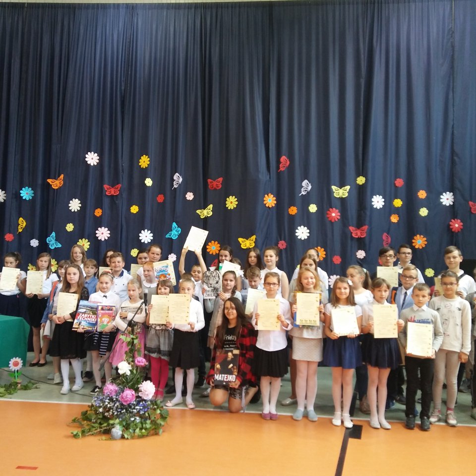 W piątek, 25 maja 2018 roku sześcioro laureatów etapu szkolnego wzięło udział w konkursie recytatorskim poezji ks. Jana Twardowskiego w Szkole Podstawowej w Gawłowie. W kategorii klas I-III reprezentowali naszą szkołę: Aleksandra Wróbel, Wiktoria Jaworska i Mateusz Adamiec- uczniowie klasy II oraz w kategorii klas IV-VII: Maria Każmierczak, Lena Stygienko- uczennice z klasy VI oraz Zuzanna Modzelewska z klasy VII. Wszyscy znakomicie poradzili sobie z recytacją utworów naszego patrona. Wiktoria Jaworska została zwyciężczynią w kategorii klas I-III. Gratulujemy wszystkim uczestnikom konkursu.