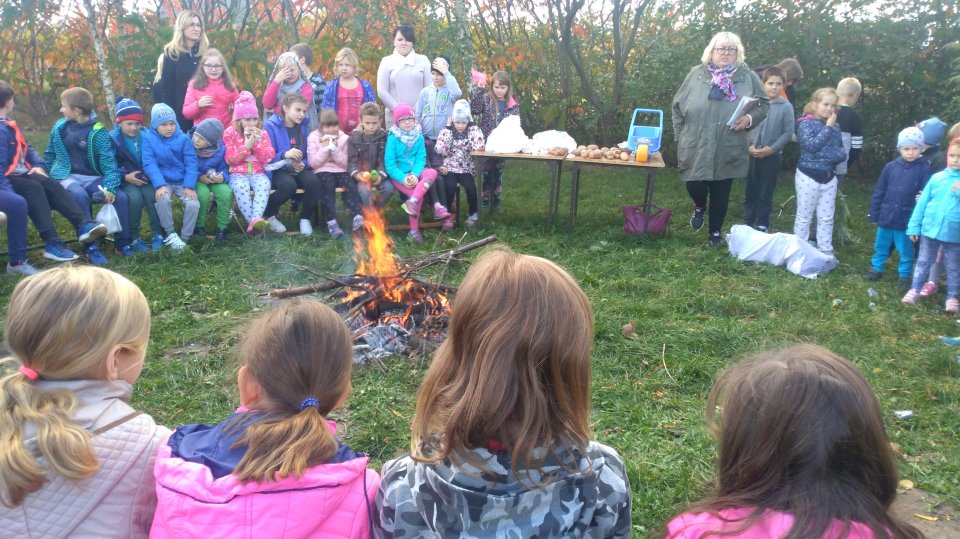 Tradycją w naszej szkole jest świętowanie nadchodzącej jesieni. Tegoroczna jest wyjątkowo kolorowa i słoneczna i dlatego zabawy i konkursy zorganizowane dnia 4 października 2018r. były wyjątkowo udane. Uczniowie przynieśli do upieczenia ziemniaki, odbyły się konkursy rzutu ziemniakiem do celu i na odległość, konkurs na przepisy potraw z ziemniaka. Dla młodszych dzieci zorganizowano poszukiwanie zaginionych w trawie ziemniaków, wykonywanie z bibuły strojów dla ziemniaczanych ludzików. Oczywiście, na zakończenie wiele atrakcji dostarczyło wyciąganie gorących ziemniaków z ogniska, w czym nieocenieni okazali się starsi uczniowie. O zadowoleniu wychowanków świadczyły pod koniec dnia uczernione upieczonymi ziemniakami buzie. Smacznego!