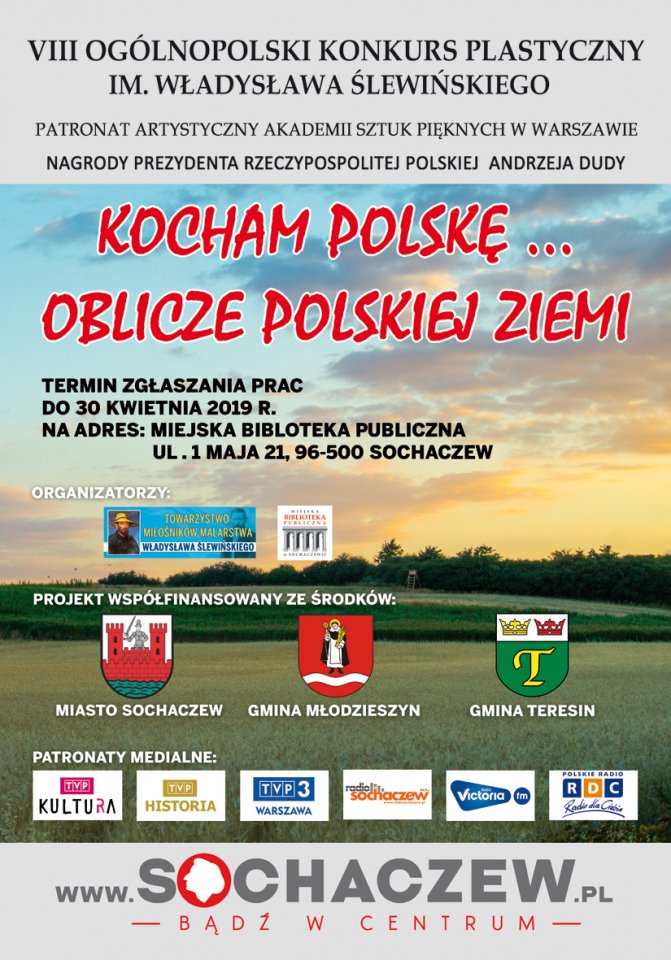 W Sochaczewie1 marca 2019 r. rozpocznie się VIII Ogólnopolski Konkurs Plastyczny im. Władysława Ślewińskiego organizowany przez Towarzystwo Miłośników Malarstwa Władysława Ślewińskiego oraz Miejską Bibliotekę Publiczną w Sochaczewie.