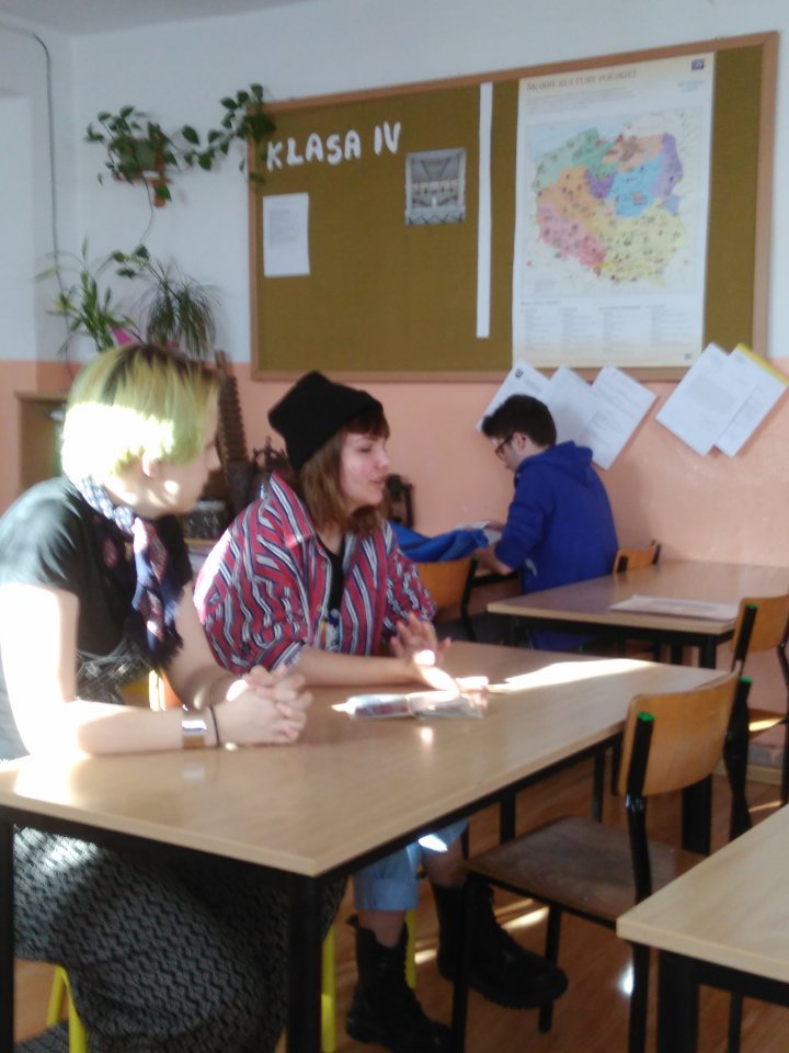 Klasę 8 odwiedziła, absolwentka naszej szkoły – Weronika Wrocławska, uczennica liceum plastycznego w Nałęczowie. Weronika wraz z koleżanką ze szkoły plastycznej, pojawiła się na lekcji na zaproszenie p. Gawłowskiej. Opowiedziała o swojej nauce w szkole artystycznej, nauczanych tam przedmiotach, specjalizacjach o przygotowaniach do zdobycia zawodu. Wizyta starszej koleżanki miała na celu skłonienie uczniów po raz kolejny do refleksji na temat wyboru szkoły i zawodu. Ósmoklasiści słuchali z wielkim zainteresowaniem.