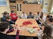 „Zaplątani w sznurkach”. Środa, 31 grudzień 2025 Klasa 8 znów dała się porwać świątecznemu tworzeniu! W przerwach między lekcjami, „zaplątani w sznurkach”, przygotowali piękne ozdoby na nasz jarmark bożonarodzeniowy. Zapraszamy do zakupu 17 grudnia na Jasełkach szkolnych.