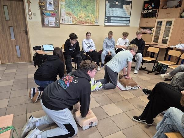 Dzięki temu uczniowie mogli na bieżąco korygować swoje działania i doskonalić technikę ucisków klatki piersiowej.